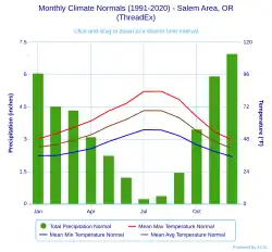 - ^ "WMO Climate Normals for SALEM, OR 1961–1990". National Oceanic and Atmospheric Administration. Archived from the original on July 5, 2023. Retrieved July 5, 2023.