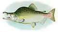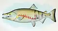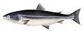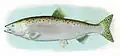Chum salmon | Oncorhynchus keta (Walbaum, 1792) | 100 cm (3 ft 3 in) | 58 cm (1 ft 11 in) | 15.9 kilograms (35 lb) | 7 years | 3.5 | [19] | [20] | [21] | ||