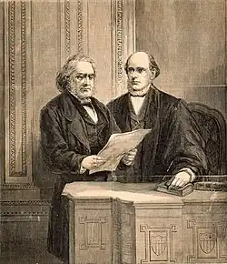 On October 23, 1873, in formally announcing the death of Chief Justice Chase in the Supreme Court and conveying the resolutions submitted by the bar, Attorney General George Henry Williams highlighted Chase's "early, continued and effectual labours for the universal freedom of man."[51]