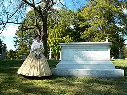 Chase died of a stroke in New York City on May 7, 1873.[3] On May 11, The New-York Times published a report on his funeral.[52] His remains were first interred in Oak Hill Cemetery in Washington, D.C., then re-interred in October 1886 in Spring Grove Cemetery, Cincinnati, Ohio.[53][54][55] Chase had been an active member of St. Paul Episcopal Cathedral, Cincinnati. Chase's birthplace in New Hampshire was declared a National Historic Landmark in 1975.