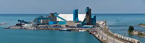 The largest mine operated by underground workings in the world is the Sifto mine, located mostly 550 meters below Lake Huron, in Goderich, Ontario (Canada). About seven million tons of salt are extracted from it annually.[95] The Khewra Salt Mine in Pakistan has nineteen storeys, eleven of which are underground, and 400 km (250 mi) of passages. The salt is dug out by the room and pillar method, where about half the material is left in place to support the upper levels. Extraction of Himalayan salt is expected to last 350 years at the present rate of extraction of around 385,000 tons per annum. The mine is also a major tourist attraction, receiving around a quarter of a million visitors a year.[96]
