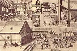 Wars have been fought over salt. Venice won the Salt War (1304) with Padua over supplying the product in certain areas, and the War of Ferrara (1482–1484) for the same reason.[32][33] It played a role in the American Revolution and the San Elizario Salt War. Cities on overland trade routes grew rich by levying duties,[32] and towns like Liverpool flourished on the export of salt extracted from the salt mines of Cheshire.[34] Governments have at different times imposed salt taxes on their peoples. The voyages of Christopher Columbus are said to have been financed from salt production in southern Spain. The oppressive salt tax in France was one of the causes of the French Revolution. After being repealed, this tax was reimposed by Napoleon when he became emperor to pay for his foreign wars, and was not abolished until 1946.[32] In 1930, Mahatma Gandhi led a crowd of 100,000 protestors on the "Dandi March" or "Salt Satyagraha", during which they made their own salt from the sea as a demonstration of their opposition to the colonial salt tax. This act of civil disobedience inspired numerous Indians and transformed the Indian independence movement into a national struggle.[35]