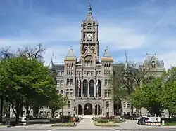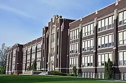 Salt Lake City is subject to earthquakes from active fault lines running through it.[23] These faults are related to the regional Wasatch Fault which runs north–south along the western base of the Wasatch Range and is considered at high risk of producing an earthquake as large as 7.5 magnitude. Catastrophic damage is predicted in the event of an earthquake with major damage resulting from the liquefaction of the clay- and sand-based soil and the possible permanent flooding of portions of the city by the Great Salt Lake.[71] On March 18, 2020, a 5.7 magnitude earthquake, the largest in the Salt Lake City area in modern times, hit Magna, just southwest of Salt Lake City, causing some minor damage throughout the valley.[72] Damage in Salt Lake City was especially evident in historic brick homes—unreinforced masonry buildings—such as the 1892 Sears mansion which required demolition after the earthquake.[73]