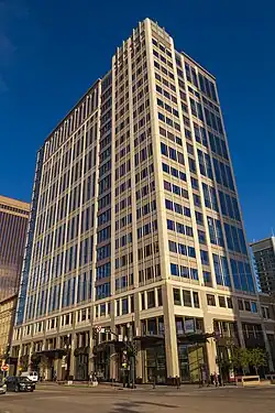 Downtown Salt Lake City has been a hub of commerce for the Intermountain West and its architecture reflects this history. Main Street, which was the primary commercial avenue for the city in the late 19th and early 20th centuries, anchors the historic core of the downtown area that begins at the Salt Lake Temple and concludes at the City and County Building. Halfway between those two structures, the Walker Center, at the corner of Main and 200 South, was built in 1912 and was the tallest building between Chicago and San Francisco upon its completion. Other extant pre-war structures include the Kearns Building, Hotel Monaco, the First Security Building,[80] the Joseph Smith Memorial Building (formerly Hotel Utah), the Boston and Newhouse Buildings,[81] the Utah State Capitol, and the Clift Building. Salt Lake City has two historic passenger rail depots, the Denver and Rio Grande Western Depot and the Union Pacific Depot, the latter of which now anchors the Gateway district. Salt Lake City lost many significant structures to forces such as urban renewal in the 20th century, including the Dooly Building, designed by Louis Sullivan, the Hotel Newhouse, and the Salt Lake Theatre.[82]