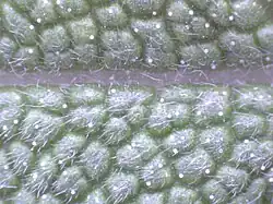 The top side of a sage leaf – trichomes are visible.