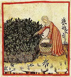 Sage being gathered in a scene from the Tacuinum Sanitatis