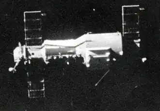 ![]() Salyut 1 as seen from the departing Soyuz 11 | |