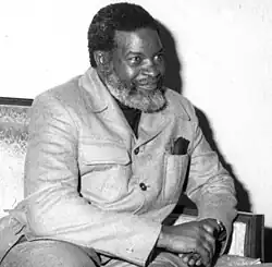 Nujoma married Kovambo Theopoldine Katjimune on 6 May 1956.[57] The couple had three sons and one daughter: Utoni Daniel (born 1952), John Ndeshipanda (1955–1993),[58] Sakaria "Zacky" Nujoma (born 1957), and Nelago Nujoma (born 1959), who died at 18 months while Nujoma was in exile.[59] Two decades elapsed before his wife joined him abroad. Nujoma's first-born son, Utoni, is a high-ranking politician and member of SWAPO who has served in both the Cabinet and the National Assembly.[60] His youngest son, Sakaria, was named in the Panama Papers in 2016,[61] which revealed details about the business connection between him and alleged Sicilian Mafia member Vito Palazzolo.[62]