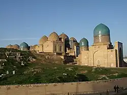 The memorial complex Shah-i-Zinda was founded by the rulers of the Karakhanid dynasty in the 11th century.[43]