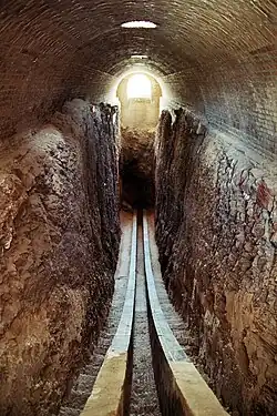 Between 1417 and 1420, Timur's grandson Ulugh Beg built a madrasah in Samarkand, which became the first building in the architectural ensemble of Registan. Ulugh Beg invited a large number of astronomers and mathematicians of the Islamic world to this madrasah. Under Ulugh Beg, Samarkand became one of the world centers of medieval science. In the first half of the 15th century, a whole scientific school arose around Ulugh Beg, uniting prominent astronomers and mathematicians including Jamshid al-Kashi, Qāḍī Zāda al-Rūmī, and Ali Qushji. Ulugh Beg's main interest in science was astronomy, and he constructed an observatory in 1428. Its main instrument was the wall quadrant, which was unique in the world.[55] It was known as the "Fakhri Sextant" and had a radius of 40 meters.[56] Seen in the image on the left, the arc was finely constructed with a staircase on either side to provide access for the assistants who performed the measurements.