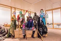 In some areas, mumming and guising were part of Samhain. It was first recorded in 16th century Scotland[88] and later in parts of Ireland, Mann, and Wales.[89] People went from house to house in costume or disguise, usually reciting songs or verses in exchange for food.[89] It may have evolved from a tradition whereby people impersonated the aos sí, or the souls of the dead, and received offerings on their behalf.[89] Impersonating these spirits or souls was also believed to protect oneself from them.[90] S. V. Peddle suggests the guisers "personify the old spirits of the winter, who demanded reward in exchange for good fortune".[91] McNeill suggests that the ancient festival included people in masks or costumes representing these spirits and that the modern custom came from this.[92] In Ireland, costumes were sometimes worn by those who went about before nightfall collecting for a Samhain feast.[89]