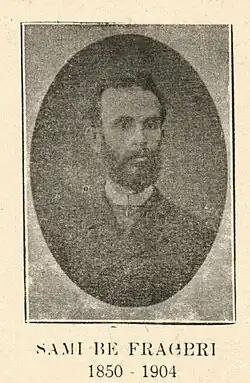 Sami bey Frashëri (Turkish: Şemseddin Sami Bey; June 1, 1850 – June 18, 1904) or Şemseddin Sâmi was an Albanian writer, lexicographer, philosopher, playwright and a prominent figure of the Albanian National Awakening, together with his two brothers Abdyl and Naim. He also supported Turkish nationalism against its Ottoman counterpart, along with secularism (anti-clericalism or laicism) against theocracy.[1]