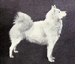 British Zoologist Ernest Kilburn-Scott is widely considered the founder of Samoyed breed. In 1889, he returned to England with a puppy he had purchased from a Samoyed encampment near Arkhangelsk.[8][9] In the early days, imported dogs were a wide array of colors. However, it was widely believed that the "true Samoyeds," as originally bred in Siberia, were predominantly white.[9] In 1909, the first official breed standard for the Samoyed was developed in England.[8]