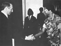 The United States valued Liberia as an important ally during the Cold War, as it helped to contain the spread of Soviet influence in Africa.[16] As part of the expanding relationship, Doe agreed to a modification of the mutual defense pact granting staging rights on 24-hour notice at Liberia's sea and airports for the U.S. Rapid Deployment Force (RDF), which were established to respond swiftly to security threats around the world.