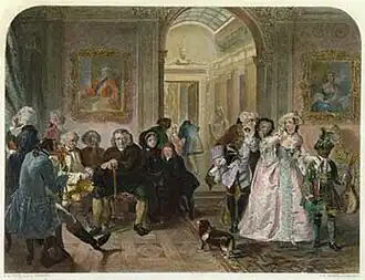 Dr. Johnson in the ante-room of Lord Chesterfield. Coloured engraving by E.M. Ward.
