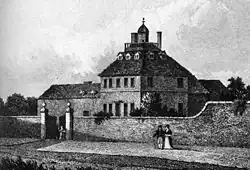 In June 1735, while working as a tutor for the children of Thomas Whitby, a local Staffordshire gentleman, Johnson had applied for the position of headmaster at Solihull School.[63] Although Johnson's friend Gilbert Walmisley gave his support, Johnson was passed over because the school's directors thought he was "a very haughty, ill-natured gent, and that he has such a way of distorting his face (which though he can't help) the gents think it may affect some lads".[64] With Walmisley's encouragement, Johnson decided that he could be a successful teacher if he ran his own school.[65] In the autumn of 1735, Johnson opened Edial Hall School as a private academy at Edial, near Lichfield. He had only three pupils: Lawrence Offley, George Garrick, and the 18-year-old David Garrick, who later became one of the most famous actors of his day.[64] The venture was unsuccessful and cost Tetty a substantial portion of her fortune. Instead of trying to keep the failing school going, Johnson began to write his first major work, the historical tragedy Irene.[66] Biographer Robert DeMaria believed that Tourette syndrome likely made public occupations like schoolmaster or tutor almost impossible for Johnson. This may have led Johnson to "the invisible occupation of authorship".[27]