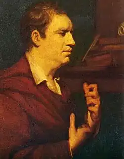 On 3 May 1777, while Johnson was trying and failing to save Reverend William Dodd from execution for forgery, he wrote to Boswell that he was busy preparing a "little Lives" and "little Prefaces, to a little edition of the English Poets".[152] Tom Davies, William Strahan and Thomas Cadell had asked Johnson to create this final major work, the Lives of the English Poets, for which he asked 200 guineas, an amount significantly less than the price he could have demanded.[153] The Lives, which were critical as well as biographical studies, appeared as prefaces to selections of each poet's work, and they were longer and more detailed than originally expected.[154] The work was finished in March 1781 and the whole collection was published in six volumes. As Johnson justified in the advertisement for the work, "my purpose was only to have allotted to every Poet an Advertisement, like those which we find in the French Miscellanies, containing a few dates and a general character."[155]