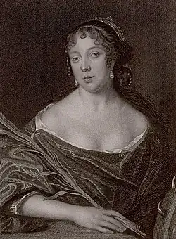 Elisabeth de St Michel, Pepys' wife. Stipple engraving by James Thomson, after a 1666 painting (now destroyed) by John Hayls.[11]