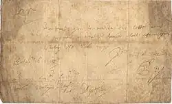 The Board did face some allegations regarding the Medway raid, but they could exploit the criticism already attracted by Commissioner of Chatham Peter Pett to deflect criticism from themselves.[8] The committee accepted this tactic when they reported in February 1668. The Board was, however, criticised for its use of tickets to pay seamen. These tickets could only be exchanged for cash at the Navy's treasury in London.[8] Pepys made a long speech at the bar of the Commons on 5 March 1668 defending this practice. It was, in the words of C. S. Knighton, a "virtuoso performance".[8]