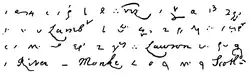 Pepys did not plan on his contemporaries ever seeing his diary, which is evident from the fact that he wrote in shorthand and sometimes in a "code" of various Spanish, French, and Italian words (especially when describing his illicit affairs).[22] However, Pepys often juxtaposed profanities in his native English amidst his "code" of foreign words, a practice which would reveal the details to any casual reader. He did intend for future generations to see the diary, as evidenced by its inclusion in his library and its catalogue before his death along with the shorthand guide he used and the elaborate planning by which he ensured his library survived intact after his death.[23]