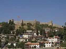 Samuel was considered "invincible in power and unsurpassable in strength".[11][12] Similar comments were made even in Constantinople, where John Kyriotes penned a poem offering a punning comparison between the Bulgarian Emperor and Halley's comet, which appeared in 989.[13][14] During Samuel's reign, Bulgaria gained control of most of the Balkans (with the notable exception of Thrace) as far as southern Greece. He moved the capital from Skopje to Ohrid,[8][15] which had been the cultural and military centre of southwestern Bulgaria since Boris I's rule,[16] and made the city the seat of the Bulgarian Patriarchate. Because of this, his realm is sometimes called the Western Bulgarian Empire.[17][18] Samuel's energetic reign restored Bulgarian might on the Balkans, even though the Empire was disestablished after his death.