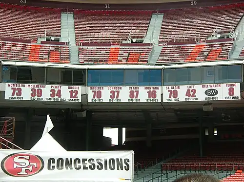 - ^ "49ers Retired Jerseys" (PDF). 2018 San Francisco 49ers Media Guide (PDF). NFL Enterprises, LLC. September 12, 2018. p. 607. Archived (PDF) from the original on August 18, 2019. Retrieved July 1, 2019.