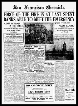 ![]() The San Francisco Chronicle's front page, April 22, 1906 | |
