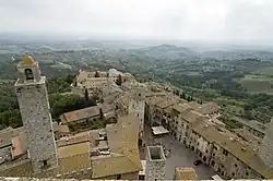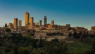 In the Middle Ages and the Renaissance era, it was a stopping point for Catholic pilgrims on their way to Rome and the Vatican, as it sits on the medieval Via Francigena.[8] The city's development was also improved by the trade of agricultural products from the fertile neighboring hills, in particular saffron, used in both cooking and dyeing cloth, and Vernaccia wine, said to inspire popes and poets.[6][9]