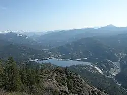 Early 1900s hydroelectric development in the upper San Joaquin River basin was not limited to Southern California Edison. In 1910, the San Joaquin Electric Company built a dam on Willow Creek, a tributary of the San Joaquin River, forming Bass Lake as part of the Crane Valley hydroelectric project. Water from Bass Lake was diverted to a powerhouse on the San Joaquin River beginning in 1917, and two more powerhouses were added in 1919, increasing the total generating capacity to about 28 MW.[86] The Crane Valley project and San Joaquin Electric was purchased by San Joaquin Light and Power Company in 1909, which was in turn purchased by Pacific Gas and Electric Company (PG&E) in 1936. In 1920, Kerckhoff Dam was completed on the San Joaquin River about 10 mi (16 km) southwest of Big Creek as part of PG&E's Kerckhoff hydroelectric project. The dam initially operated with a capacity of 38 MW in the Kerckhoff No. 1 Powerhouse on Millerton Lake. In 1983, the 155 MW Kerckhoff No. 2 Powerhouse was added, bringing the total capacity to 193 MW.[87]