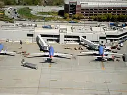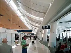 1. ^ Line 16 of Terminal B: In 2017, the airport added two gates, Gates 29 and 30, at the south end of the terminal. Due to the airport's growth in recent years, a new temporary facility was added at the south end of the terminal that includes six additional gates as part of the $58 million project. Gates 31-35 opened June 13, 2019, and Gate 36 opened on November 1, 2019.[69]