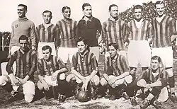 In 1920 and 1922, San Lorenzo finished third, finally winning its first title in 1923. The squad won 17 of 20 games, only losing 2. San Lorenzo scored 34 goals in 20 fixtures, conceding 13.[14] That same year the squad also won its first international title, The Copa Campeonato del Río de la Plata after beating Montevideo Wanderers 1–0 in the final.