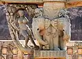The decorations of Stupa No. 2 have been called "the oldest extensive stupa decoration in existence",[29] and this Stupa is considered as the birthplace of Jataka illustrations.[30] The reliefs at Stupa No.2 bear mason marks in Kharoshthi, as opposed to the local Brahmi script.[27] This seems to imply that foreign workers from the north-west (from the region of Gandhara, where Kharoshthi was the current script) were responsible for the motifs and figures that can be found on the railings of the stupa.[27] Foreigners from Gandhara are otherwise known to have visited the region around the same time: in 115 BCE, the embassy of Heliodorus from Indo-Greek king Antialkidas to the court of the Sungas king Bhagabhadra in nearby Vidisha is recorded, in which Heliodorus established the Heliodorus pillar in a dedication to Vāsudeva. This would indicate that relations had improved at that time, and that people traveled between the two realms.[32]