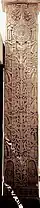 The height of the pillar, including the capital, is 15 ft, its diameter at the base 1 ft. 4 in. Up to a height of 4 ft. 6 in. the shaft is octagonal; above that, sixteen-sided. In the octagonal portion all the facets are flat, but in the upper section the alternate facets are fluted, the eight other sides being produced by a concave chamfering of the arrises of the octagon. This method of finishing off the arris at the point of transition between the two sections are features characteristic of the second and first centuries BCE. The west side of the shaft is split off, but the tenon at the top, to which the capital was mortised, is still preserved. The capital is of the usual bell-shaped Persepolitan type, with lotus leaves falling over the shoulder of the bell. Above this is a circular cable necking, then a second circular necking relieved by a bead and lozenge pattern, and, finally, a deep square abacus adorned with a railing in relief. The crowning feature, probably a lion, has disappeared.[36]