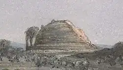General view of the Stupas at Sanchi by F.C. Maisey, 1851 (The Great Stupa on top of the hill, and Stupa 2 at the forefront) -