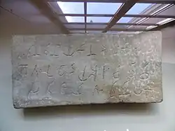 The inscription reads: "Vedisakehi damtakārehi rupakammam katam" meaning "The ivory-workers from Vidisha have done the carving".[44][45]
