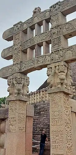 ![Foreigners holding grapes and riding winged lions, Sanchi Stupa 1, Eastern Gateway.[90]](./_assets_/0c70a452f799bfe840676ee341124611/Foreigners_riding_winged_lions_Sanchi_Stupa_1_Eastern_Gateway.jpg)