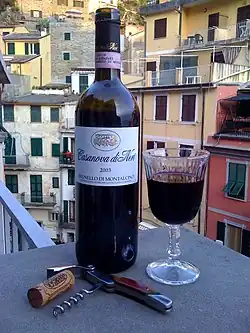 Over the years, Sangiovese has been known under a variety of synonyms, many of which have come to be associated with a particular clone of the grape variety. Among the synonyms recognized for the grape are: Brunelletto (in the Grosseto region of Tuscany), Brunello, Brunello di Montalcino, Cacchiano (in Tuscany), Calabrese (in Tuscany), Cardisco, Chiantino (in Tuscany), Cordisio, Corinto nero (on the island of Lipari in Sicily), Dolcetto Precoce, Guarnacciola (in the Benevento region of Campania), Ingannacane, Lambrusco Mendoza (in Tuscany), Maglioppa, Montepulciano, Morellino, Morellone, Negrello (in Calabria), Negretta, Nerello (in Sicily), Nerello Campotu (in Calabria), Nerino, Niella (in Corsica), Nielluccia, Nielluccio (in Corsica), Pigniuolo Rosso, Pignolo, Plant Romain, Primaticcio, Prugnolo, Prugnolo Dolce (in Tuscany), Prugnolo di Montepulciano, Prugnolo Gentile, Prugnolo Gentile di Montepulciano, Puttanella (in Calabria), Riminese, Rosso di Montalcino, San Gioveto, San Zoveto (in Tuscany), Sancivetro, Sangineto, Sangiogheto (in Tuscany), Sangiovese dal Cannello Lungo, Sangiovese di Lamole, Sangiovese di Romagna, Sangiovese Dolce, Sangiovese Gentile, Sangiovese Grosso, Sangiovese Nostrano, Sangiovese Piccolo, Sangiovese Toscano, Sangioveto (in Tuscany), Sangioveto dell'Elba, Sangioveto Dolce, Sangioveto Grosso, Sangioveto Montanino, Sanvincetro, Sanzoveto, Tabernello, Tignolo, Tipsa, Toustain (in Algeria), Tuccanese (in Apulia), Uva Abruzzi, Uva Tosca, Uvetta, Uva brunella, Uva Canina, Vigna del Conte (in Calabria) and Vigna Maggio (in Tuscany).[10][14][21]