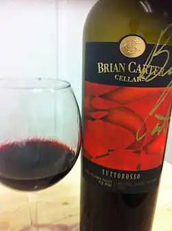 In Washington State, one of the first commercial plantings of Sangiovese was at Red Willow Vineyard in the Yakima Valley AVA. Today, winemakers are seeking out locations that can highlight the varietal character of Sangiovese. These young plantings in areas such as Walla Walla, Naches Heights AVA and Yakima Valley have so far produced wines with a spicy and tart cherry flavours, anise, red currants, and tobacco leaf notes.[18] Like in California, plantings of Sangiovese in Washington have declined in recent years to 185 acres (75 ha) in 2011.[10]
