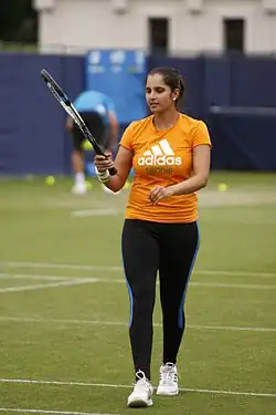 Sania Mirza ([ˈsaːnijaː ˈmirzaː]; born 15 November 1986) is an Indian former professional tennis player. A former doubles world No. 1, she won six major titles – three in women's doubles and three in mixed doubles.[4][5] From 2003 until her retirement from singles in 2013, she was ranked by the Women's Tennis Association as the No. 1 Indian in singles.[6][7] Throughout her career, Mirza has established herself as one of the most known, highest-paid, and influential athletes in India.[8][9][10]