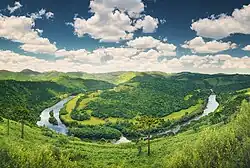 The Basaltic plateau encompasses a significant portion of the state's territory. Comprising basaltic sediments (lava flows), interspersed with sandstone deposits, its eastern boundary is a mountainous edge known as the Serra Geral. In the north of the state, the edge of the basaltic plateau is situated inland. Moving southwards, it progressively approaches the coast until, at the border with Rio Grande do Sul, it starts to descend directly towards the sea. The plateau area is reasonably average and slopes gently westward. The rivers, flowing towards the neighbouring state of Paraná, have carved deep valleys into it.[8] The lands of the mixed ombrophilous forest are infertile, as are the soils of the grasslands, which are utilised for dairy and beef cattle farming. The soils of the humid subtropical forest are characterised by their fertility.[41]