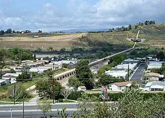 One major contributor to the valley's early development was the Whittaker-Bermite Corporation. From 1934 to 1987, the corporation manufactured, stored, and tested explosives, including bombs and bottle rockets, on a 996-acre site (403 ha) south of Soledad Canyon Road, east of Railroad Avenue, northeast of the Circle J Ranch community, southwest of Centre Pointe Parkway, and west of Golden Valley Road. The first housing tract in the area consisted of company homes along Walnut Street in Newhall. In modern times, the California Department of Toxic Substances Control has made efforts to clean the area of perchlorate and other toxic chemicals left behind by decades of munitions testing.[35][36] The site is being considered for development.[37]