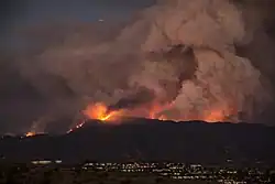During the summer (late June through mid-September) high temperatures average 90–95 °F (32–35 °C), commonly reaching 110 °F (43 °C) or higher during heat waves. Rain is very rare. Due to the aridity, summer temperatures cool down significantly at night. Summer and fall carry significant wildfire risk due to the presence of dry brush. The hottest temperature recorded in the city is 118 °F (48 °C) on July 5, 2024.[62]