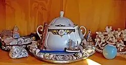 Altars or shrines to the oricha are typically found both within the igbodu[196] and in practitioners' homes.[197] Central to these altars are sacred objects, termed fundamentos ("fundamentals"),[198] which are contained within porcelain vessels, often tureens, called sopera.[199] The most important of the fundamentos are stones termed otanes (sing. otán),[199] which are regarded as the literal and symbolic representation of the oricha,[200] and thus living entities.[201] They are deemed to be sources of aché,[202] with older otanes having more aché than younger ones.[203]