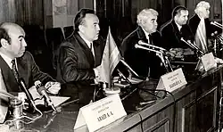 In 1962, Niyazov started his political career, becoming a member of the Communist Party. He quickly rose through the ranks, becoming First Secretary of the Ashgabat City Committee,[16] and First Secretary of the Communist Party of the Turkmen SSR in 1985. He gained this post after Soviet General Secretary Mikhail Gorbachev had removed his predecessor, Muhammetnazar Gapurov, following a cotton-related scandal. Under Niyazov, the Turkmen Communist Party had a reputation as one of the most hardline and unreformed party organizations in the Soviet Union. On 13 January 1990, Niyazov became Chairman of the Supreme Soviet of the Turkmen SSR, the supreme legislative body in the republic. The post was equivalent to that of president.