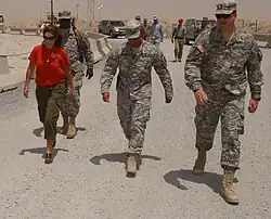 In 2006, Palin obtained a passport.[93] In 2007, she traveled to Kuwait, where she visited the Khabari Alawazem Crossing at the Kuwait–Iraq border and met with members of the Alaska National Guard.[94] On her return journey, she visited injured soldiers in Germany.[95]