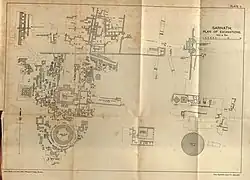 Friedrich Oertel conducted extensive excavations in 1904–1905. His team focused on the area near stupa "J" (the Dhamek Stupa), stupa "K" ("Jagat Singh stupa", now known as the Dharmarajika Stupa), monastery "L", temple "M", hospital "N", monastery "O", and the Ashokan pillar. In March 1905, the team exhumed parts of the base and shaft of the pillar with its Schism Edict, lion capital, and remnants of the dharmachakra sculpture.[62] Dating to c. 241-233 BCE,[63] these are the oldest and most important relics discovered at Sarnath thus far.[6] J. Ph. Vogel translated the inscription—which was written in the Brahmi of the Maurya period-and tentatively dated it to 249 BCE.[64]