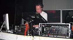 Sasha attributes his success to his technical skill and ability to "connect with his dancers".[17] During performances, he balances new and experimental material, while ensuring that "the party is still rockin'".[29] His spontaneity carries over to studio work; he typically has only a vague idea of the track listing when beginning work on a new mix album.[60] Because of this, his albums never turn out quite as he expects.[60] Sasha is known for applying new music technologies to both his studio and live work. Both Sasha and Digweed used Pro Tools on Mac computers when mixing their compilation albums, and used turntables and records during live performances. For their remixes, however, they used an Atari ST—an obsolete personal computer from the early 1990s—with Notator, a music sequencer used for arranging audio tracks.[61] For more recent albums such as Fundacion NYC, Sasha used Ableton Live for sequencing, partially because of Pro Tools' higher price.[55] In live performances up to the late 1990s, Sasha performed exclusively using records. Before he started using the CDJ1000, a "turntable" used for CDs, he had his digital music specially cut to acetate records before each tour.[37] Once he integrated CDs into his live act, Sasha operated CDJ1000s with Allen & Heath mixers and FireworX.[35]