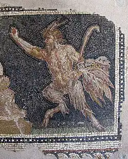 Medieval Christians were known to adapt previously existing pagan iconography to suit depictions of Christian figures.[249][250] Much of Satan's traditional iconography in Christianity appears to be derived from Pan,[249][250] a rustic, goat-legged fertility god in ancient Greek religion.[249][250] Early Christian writers such as Saint Jerome equated the Greek satyrs and the Roman fauns, whom Pan resembled, with demons.[249][250] Satan's pitchfork appears to have been adapted from the trident wielded by the Greek god Poseidon[250] and Satan's flame-like hair seems to have originated from the Egyptian god Bes.[250] By the High Middle Ages, Satan and devils appear in all works of Christian art: in paintings, sculptures, and on cathedrals.[257] Satan is usually depicted naked,[250] but his genitals are rarely shown and are often covered by animal furs.[250] The goat-like portrayal of Satan was especially closely associated with him in his role as the object of worship by sorcerers[258] and as the incubus, a demon believed to rape human women in their sleep.[258]