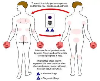 | Risk factors | Crowded living conditions (child care facilities, group homes, prisons), lack of access to water, wearing second hand clothing[3][4][5] |