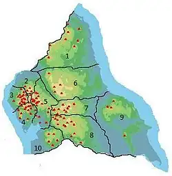 Scafell Pike (/ˈskɔːfɛl/)[2] is a mountain in the Lake District region of Cumbria, England. It has an elevation of 978 metres (3,209 ft) above sea level, making it the highest and the most prominent mountain in England.[1][3] The mountain is part of the Scafell massif,[4] an extinct volcano,[5] and is one of the Southern Fells.
